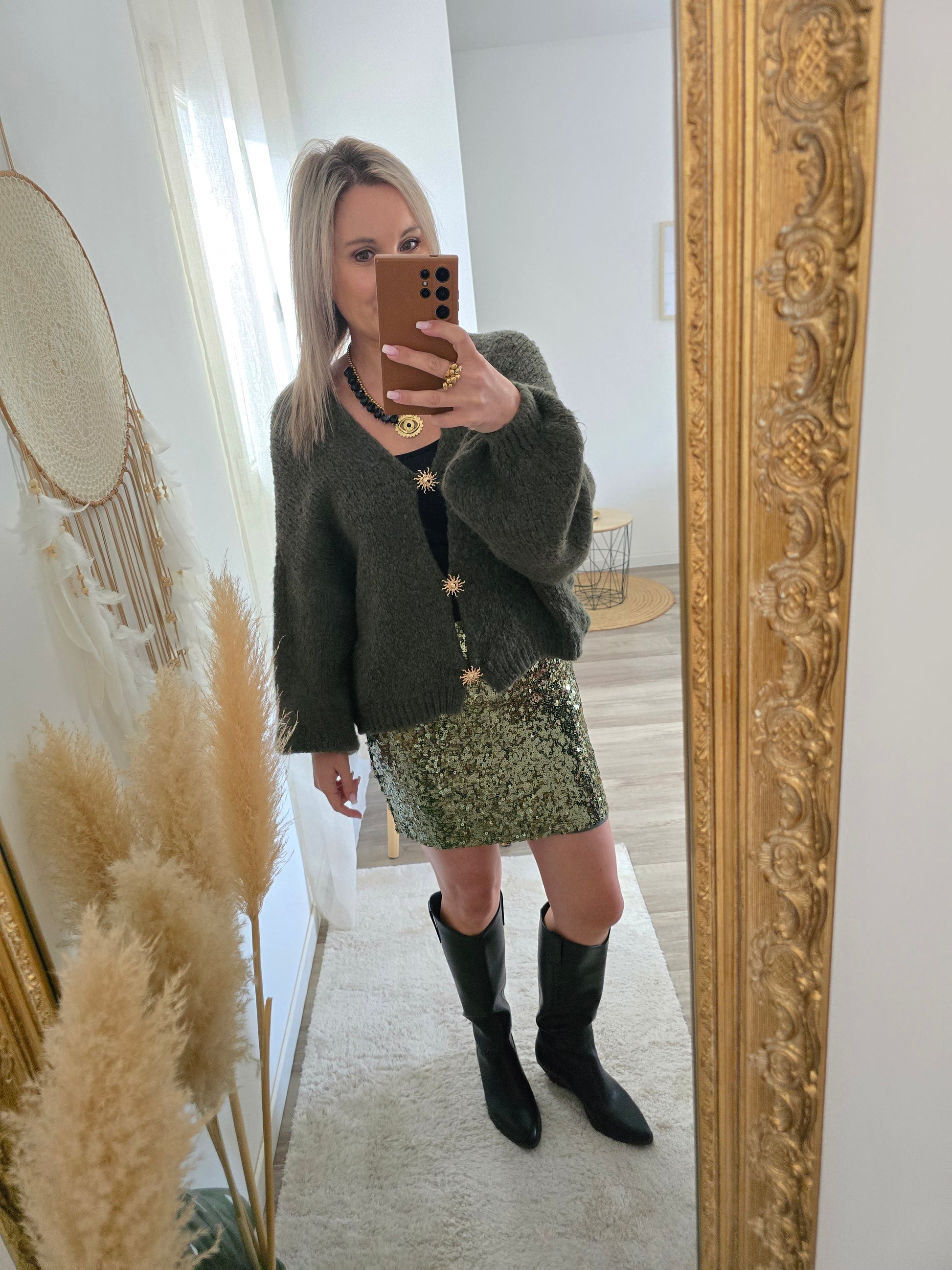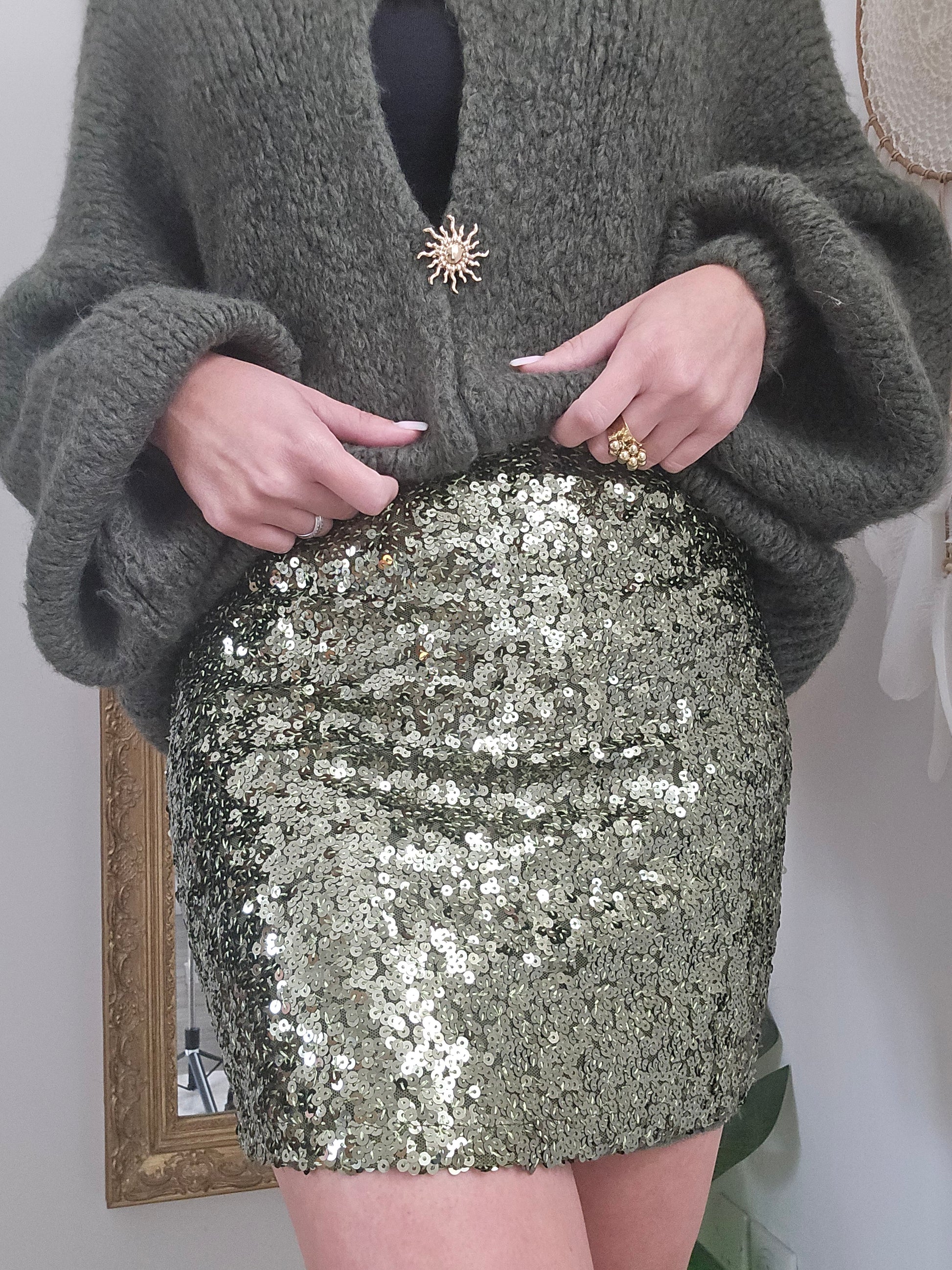 . Jupe à sequins kaki