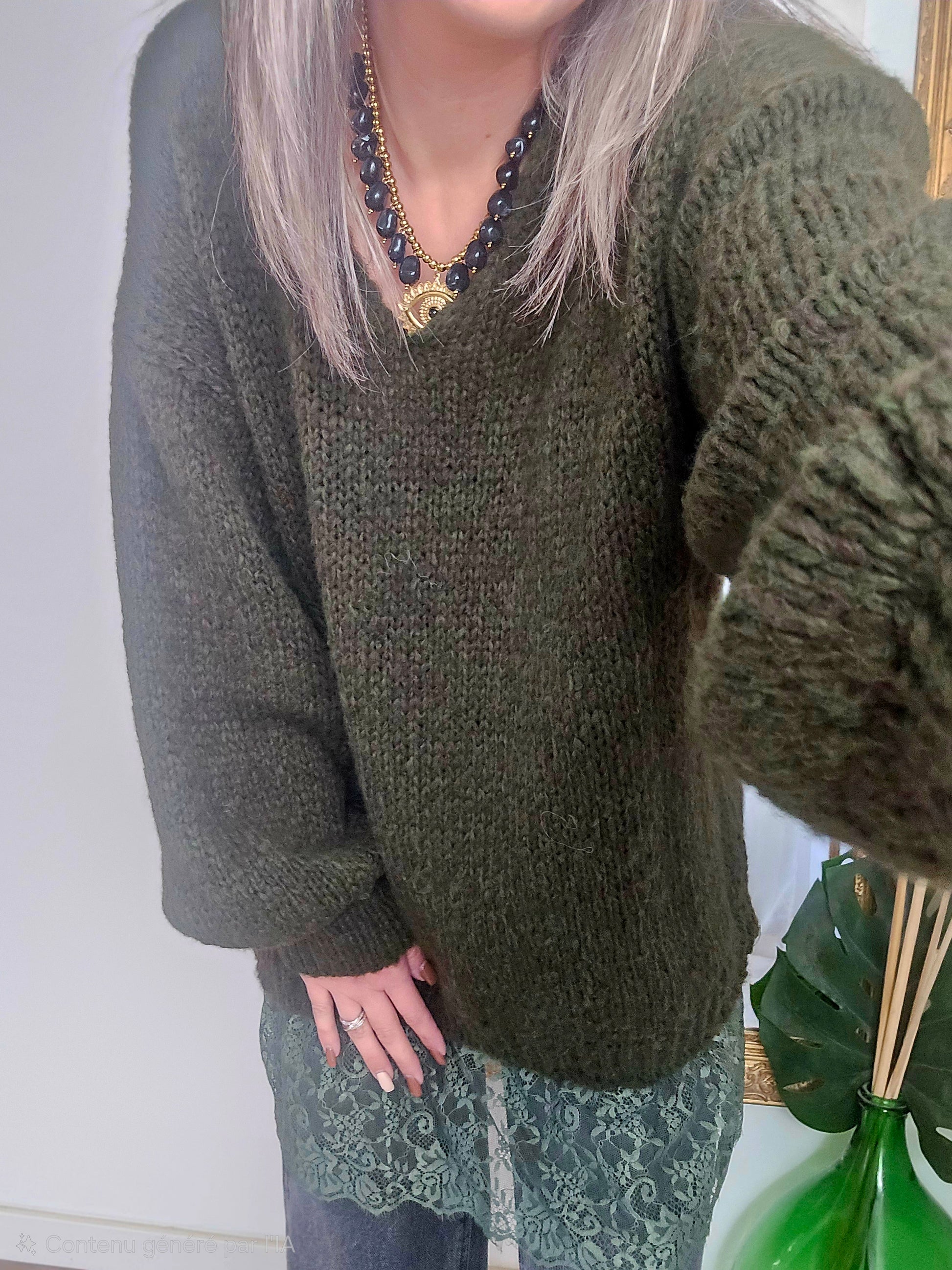 . Pull col V, bas dentelle intégré